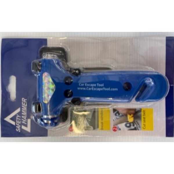 Designed to be positioned within your vehicle within reach of the driver, so in the event of an accident you can reach it, and use the cutting tool to cut your seat belt and then use the tungsten headed hammer to break the glass and escape through the window.