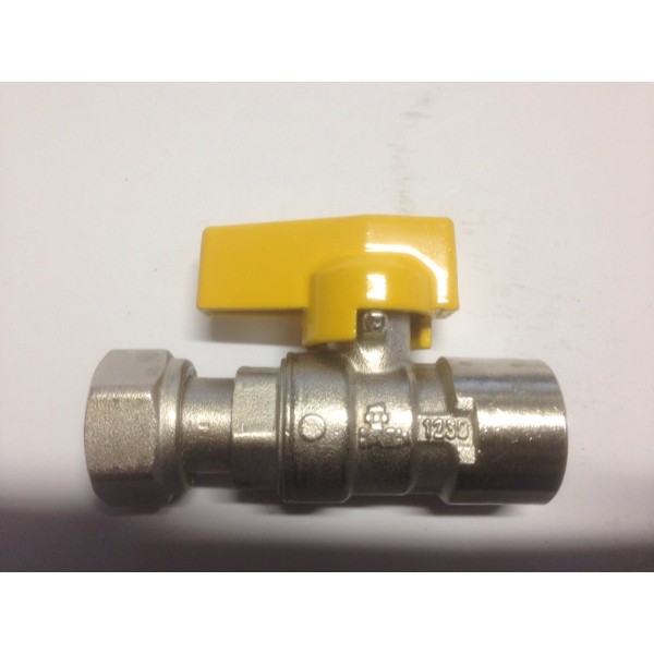 GAS BALL VALVE, FEMALE FEMALE WITH ONE SWIVEL END, YELLOW HANDLE